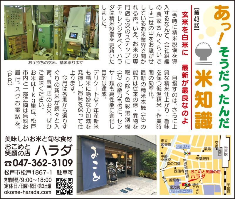 お米は1kg単位、松戸市内と一部近隣は無料お届け。スグお電話を。(PR)