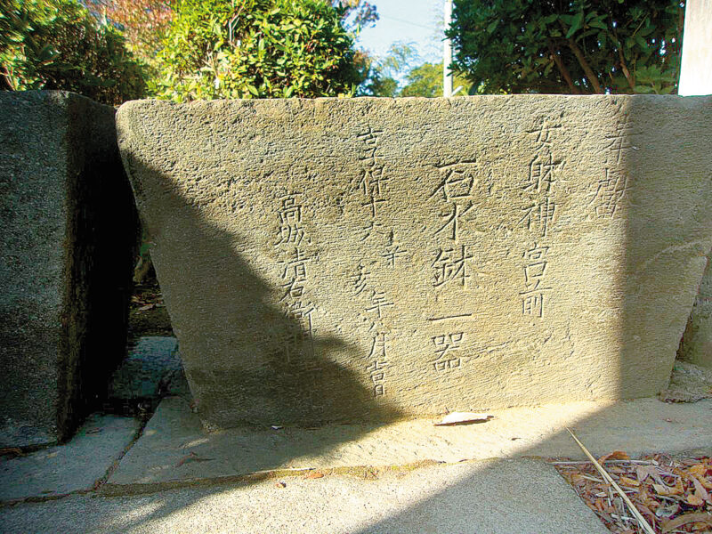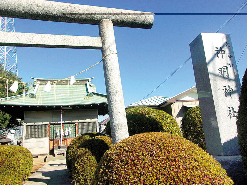 右側の水石鉢に名が残る大谷口女躰神社(大谷口神明神社)