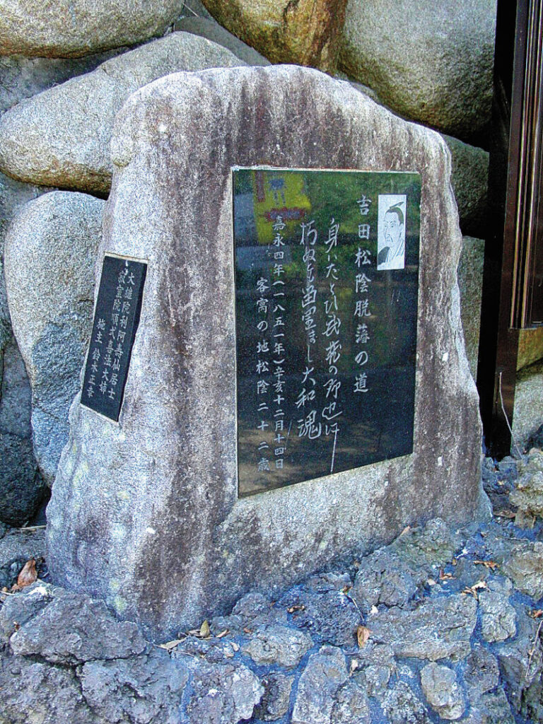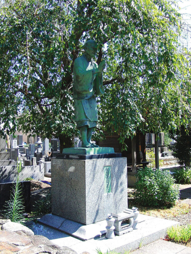 松戸市内唯一の時宗寺院であり、一遍上人の銅像のある本福寺の前には「吉田松陰脱藩の道」の碑が建てられています。黒船来航の衝撃に揺れる幕末、長州藩邸を脱走した吉田松陰は、海外渡航を目指す無謀な旅に踏み出しました。禁制を破ってまでも志を貫こうとしたその行動は、常識からすれば狂気にも映ります。その夜、松陰が身を休めたのが下総松戸の本福寺でした。