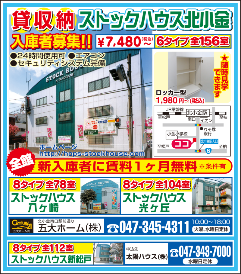 ストックハウス新松戸 TEL.047-343-7000 ㈱太陽ハウス ※水曜日定休