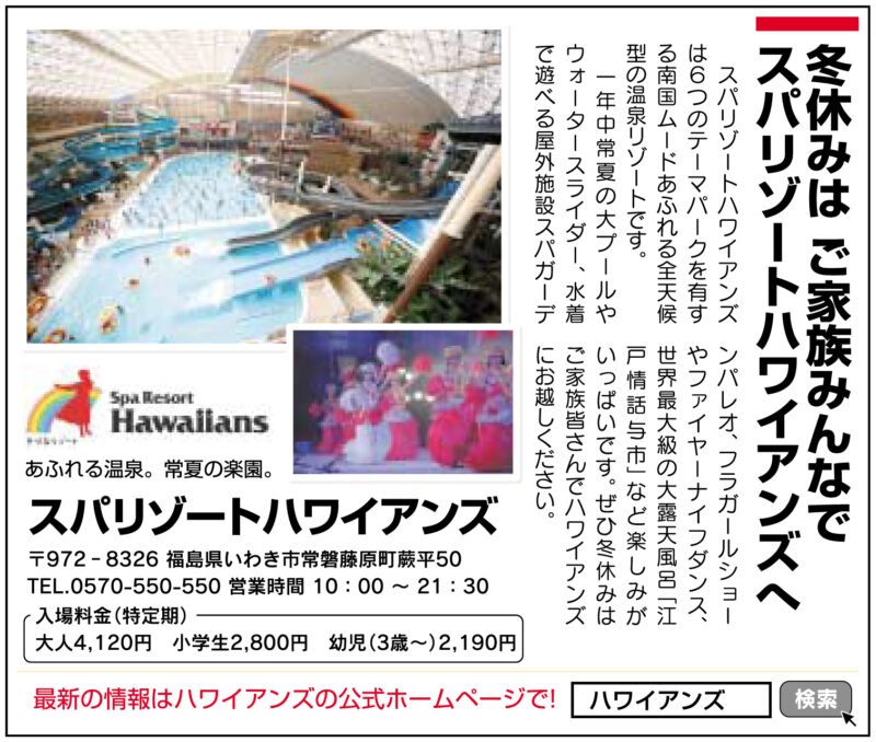 冬休みは ご家族みんなでスパリゾートハワイアンズへ