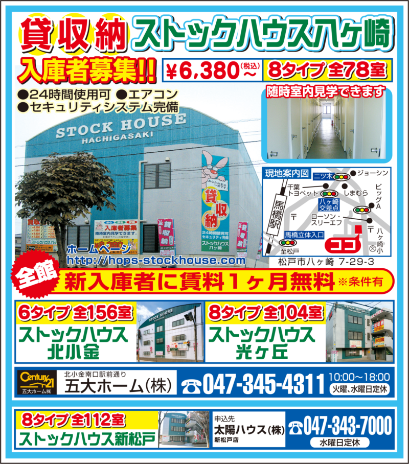 ストックハウス新松戸 TEL.047-343-7000 ㈱太陽ハウス ※水曜日定休