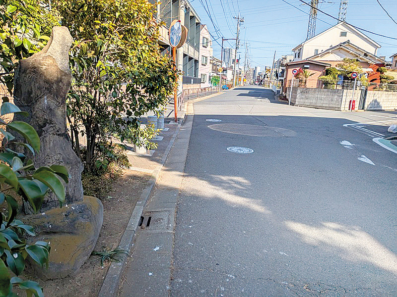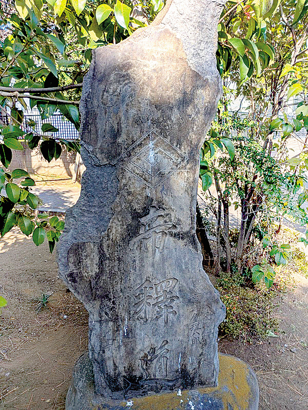 今回紹介するのは『帝釋道』という石碑です。令和4年、「旧街道を歩こう!旧水戸街道、千住~松戸宿編」という一面企画を取材した時には、その存在に全く気づきませんでした。場所は、旧水戸街道と新金貨物線が交差する「浜街道踏切」付近。地蔵や石碑が集まる場所の一角に、いびつな形の石碑が立っています。よ~く見ると「帝釋道」の大きな文字と、上部には指さしマークが刻まれているのがわかりました。実は石碑が立つ場所、Y字路になっていて、左手は金町方面に続く旧水戸街道ですが、右手に進むと映画「男はつらいよ」の舞台で有名な柴又帝釈天に通じています。現在の地図を見ても、その地点から柴又駅近くまで、なだらかなカーブを描いて道が続いている様子がわかりますよ。つまりこの石碑は、分岐点(追分)に立つ道路標識で、帝釈天参拝客のための案内板だったんですね。さらにじっくり石碑を観察すると、帝釋道の文字の右に「東京日本橋区浪花町」の地名や、下には数人の氏名が刻まれています。日本橋区について調べてみると、明治11年から昭和22年まで存在した地名だと分かりました。恐らく石碑が立てられたのは江戸期ではなく、明治期以降でしょう。それにしてもなぜ、あえてこんないびつな形の石を選んだのか(デザインにしたのか)、その理由が気になります(笑)。(パイン)