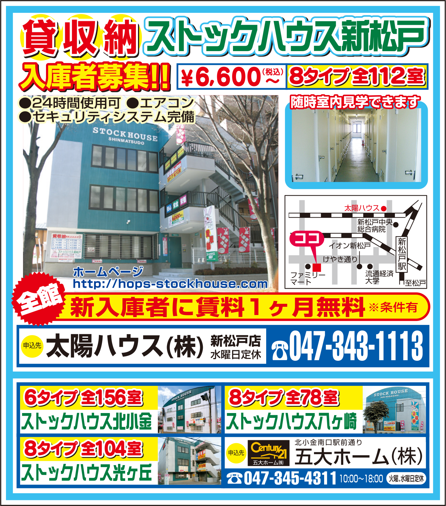 ストックハウス新松戸 TEL.047-343-7000 ㈱太陽ハウス