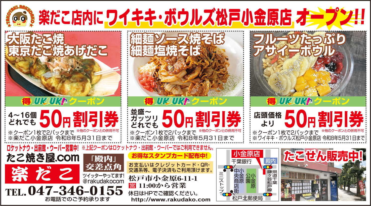 楽だこ内に「ワイキキ・ボウルズ松戸小金原店」オープン!!