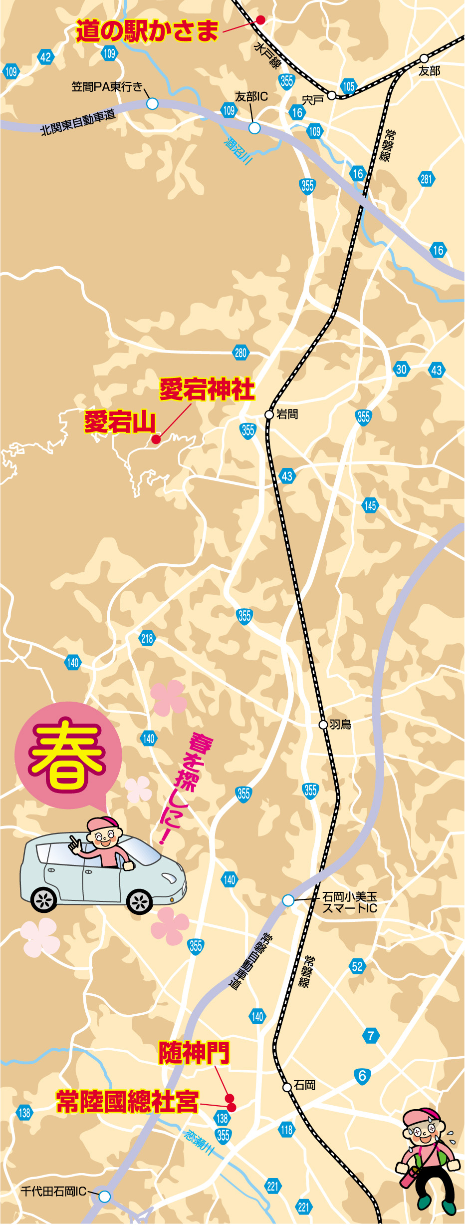 いよいよ笠間に向かいます。神社を出て石岡の中心街を通過する際、道幅が狭くなり、クランク上になっている点など宿場町だった風情を感じます。国道355線沿いには、古い建築物が立ち並びますが、ほとんどの店がシャッターを閉ざし、日曜日の街並みは少々寂しい感じ。国道を北上し、旧道は交通量が少なく快適。バイパスと交差しますが、懐かしさを求めて、そのまま旧道へ。暫し旧道は、常磐線と並行し、途中で羽鳥駅、岩間駅付近を通過しますが、駅周辺の古い街並みがとてもいい感じ。レトロ好きには嬉しいですね。やがてバイパスと合流し、友部IC出入口を通過し、JR水戸線の高架橋を渡れば、「道の駅かさま」に到着です。