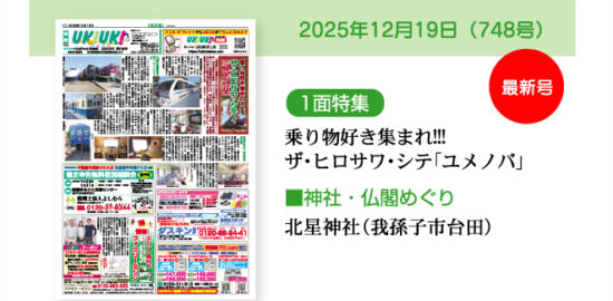2025年12月19日(748号)【今号掲載の記事】■1面特集:乗り物好き集まれ!!!ザ・ヒロサワ・シテ「ユメノバ」■神社・仏閣めぐり:北星神社(我孫子市台田)【今号掲載の広告スポンサー】(順不同)…